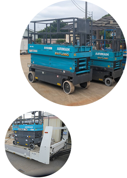 高所作業車(9台)及び専用運搬車(2台)による迅速かつ安全な作業。